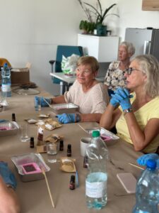 The workshops began with a short introduction, during which participants learned about the ingredients needed to make natural soap. Next came the hands-on part — each senior was able to mix oils, natural dyes, and fragrances to create unique soaps.