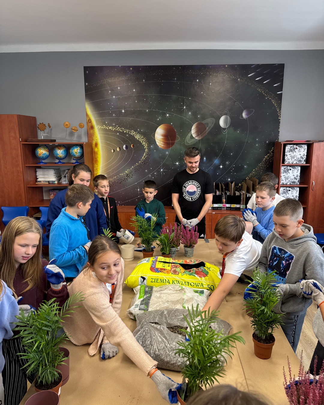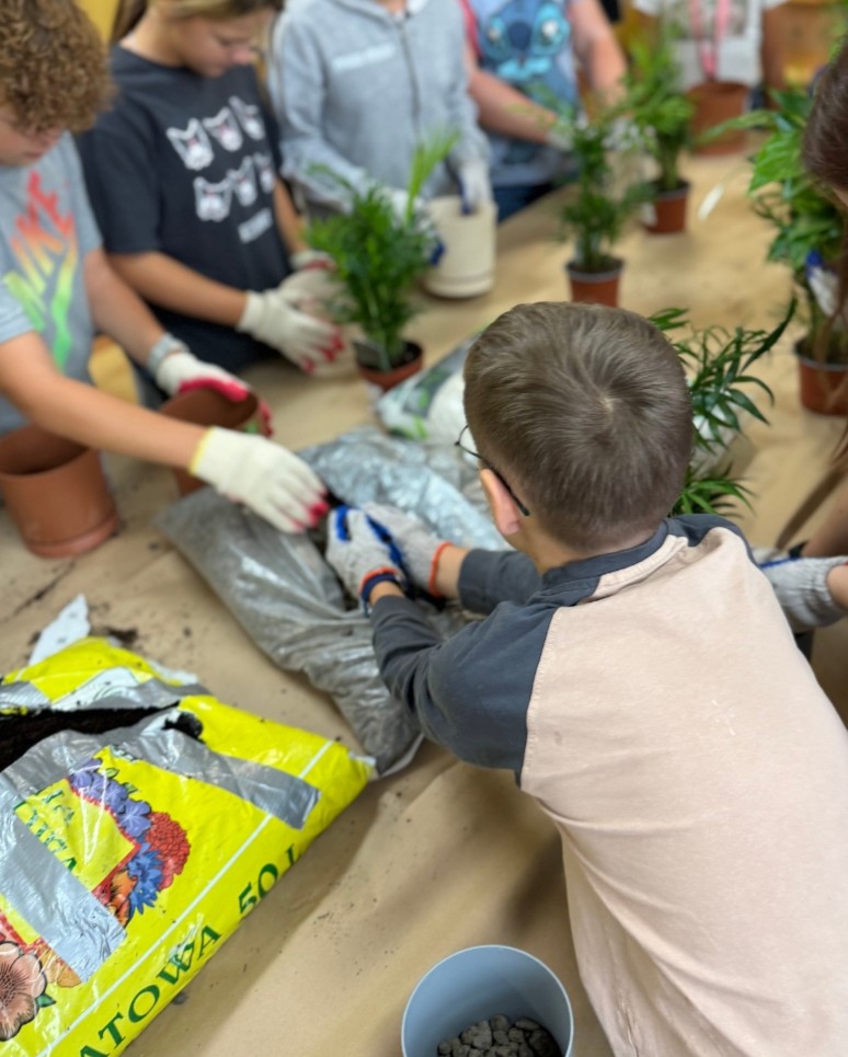 A day later, we met with students in Knurów, turning their classroom into a fragrant, green garden – soil on the floor, plenty of laughter, and a great dose of positive energy. As always, we planted heathers and palms while talking about the benefits of plants – how greenery calms the mind, boosts energy, and helps with concentration.