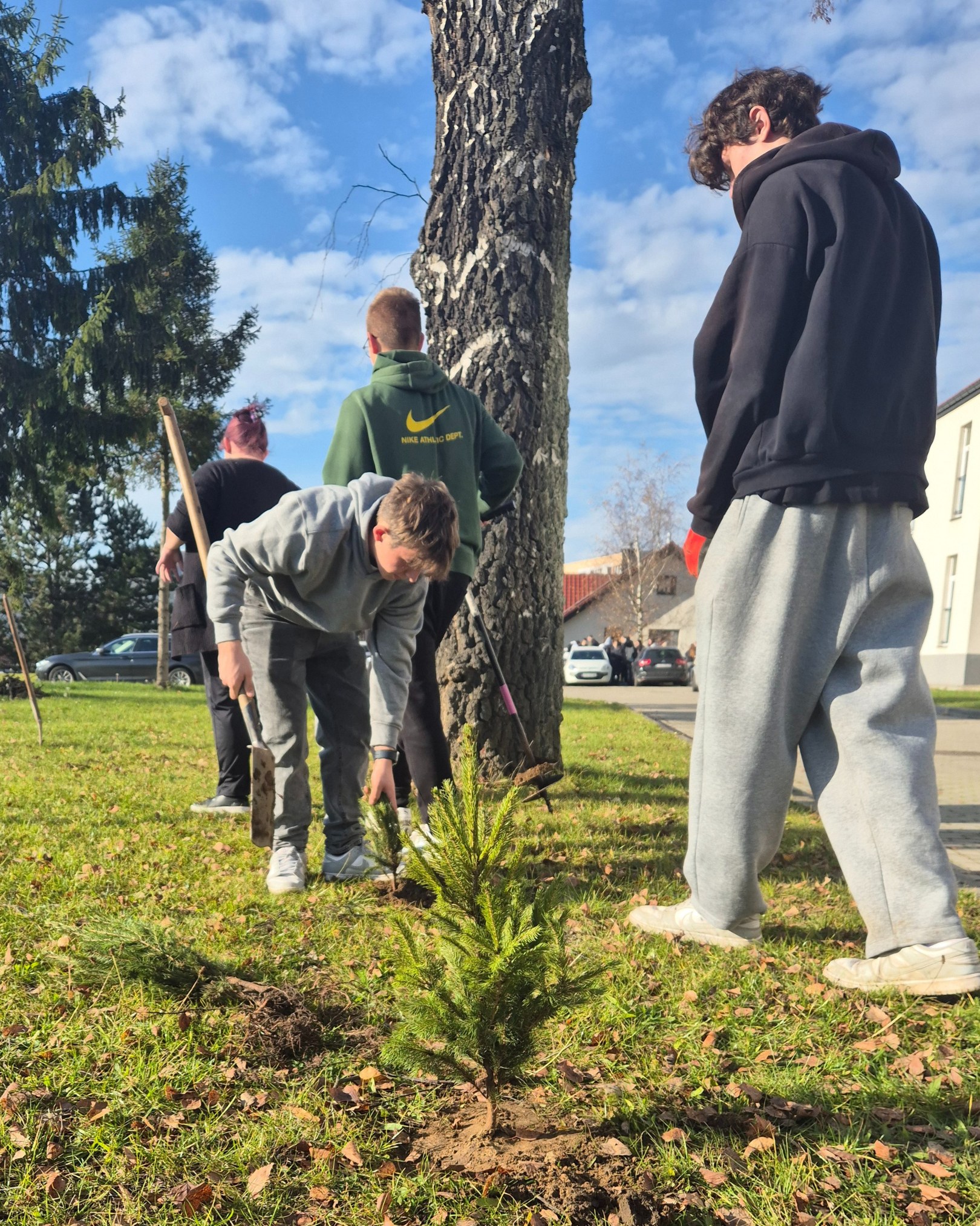 Durante la acción, la juventud plantó distintos tipos de árboles caducifolios y coníferas, creando un entorno natural, resistente y diverso alrededor del centro.