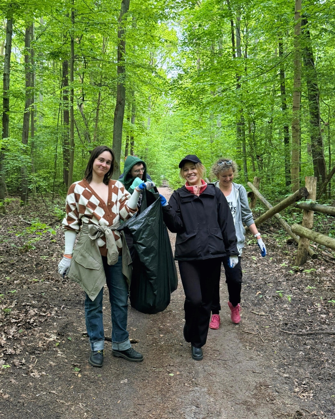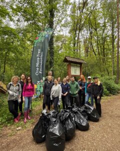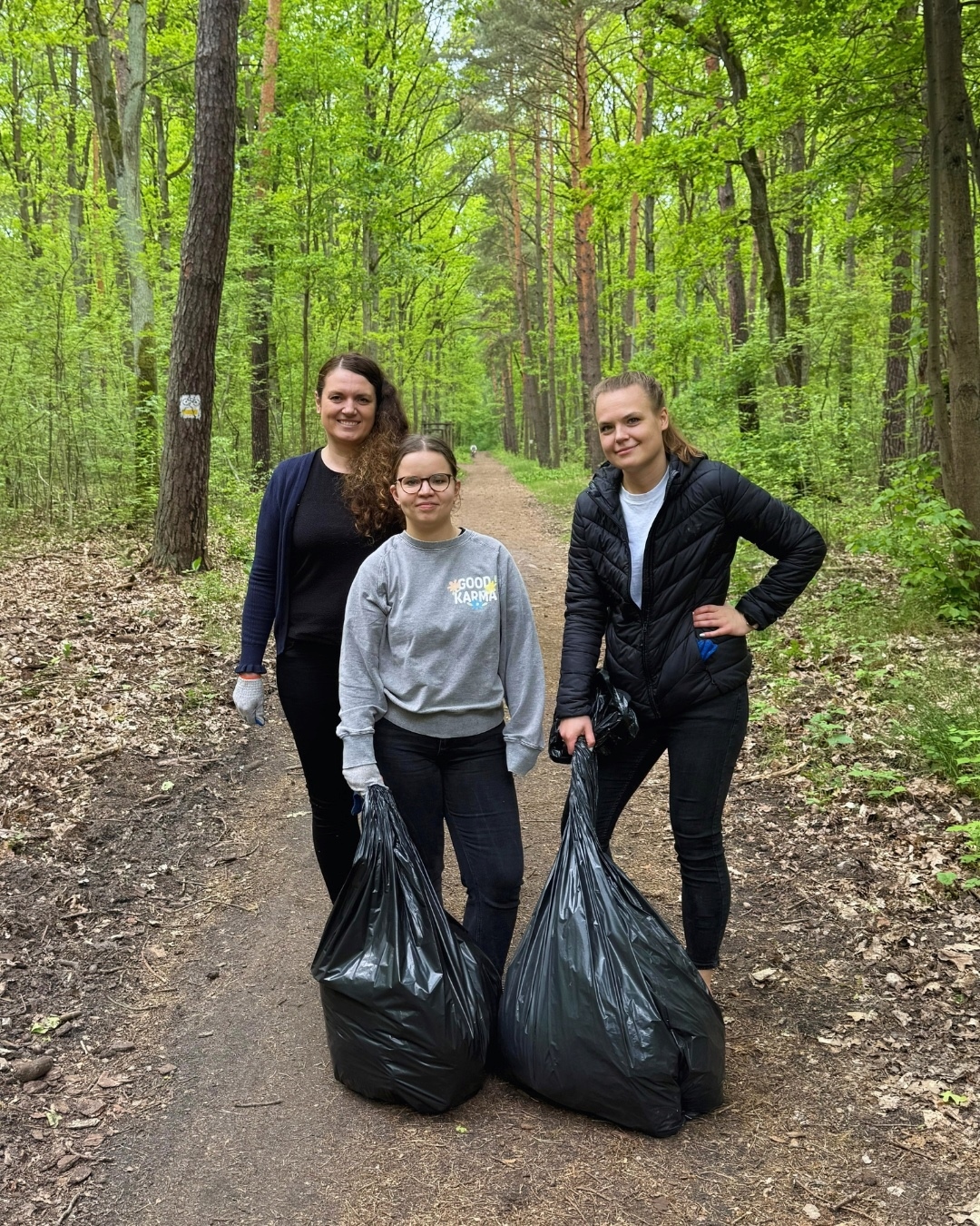 Wolontariusze z Coface, z pełnym zaangażowaniem i energią, przez kilka godzin pracowali nad oczyszczeniem fragmentów lasu. Ich działania obejmowały zarówno zbieranie odpadów widocznych na powierzchni, jak i tych trudniej dostępnych, ukrytych w zaroślach czy pod liśćmi. Efektem ich pracy było zebranie 12 worków odpadów, wśród których znalazły się m.in. plastikowe butelki, puszki, papier oraz niebezpieczne śmieci, takie jak szkło czy elementy metalowe, które mogłyby zaszkodzić dzikim zwierzętom lub osobom korzystającym z lasu. Uczestnicy wykazali się dużą determinacją i odpowiedzialnością – każdy worek zapełniony śmieciami był dowodem na skuteczność wspólnych działań i siłę pracy zespołowej.